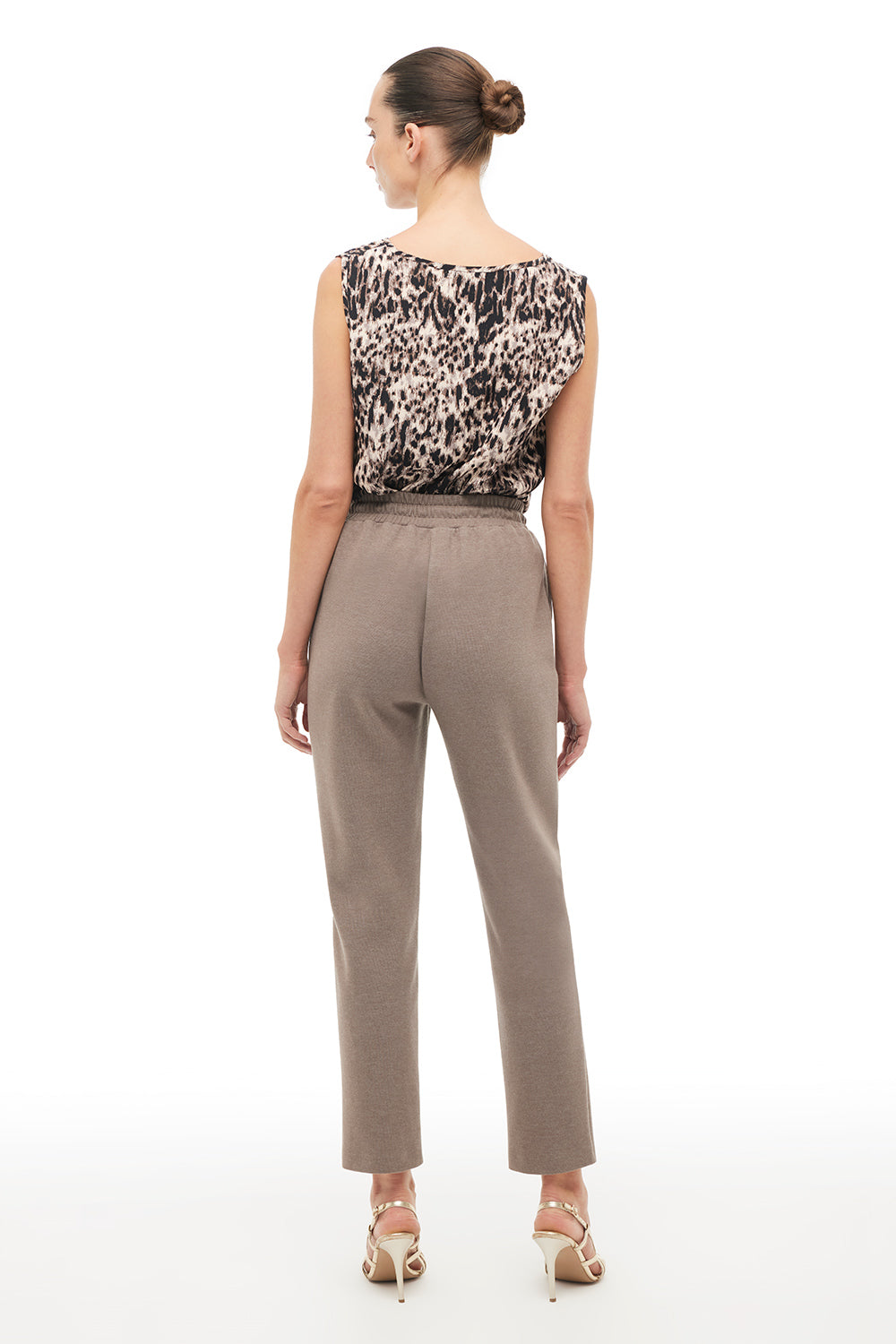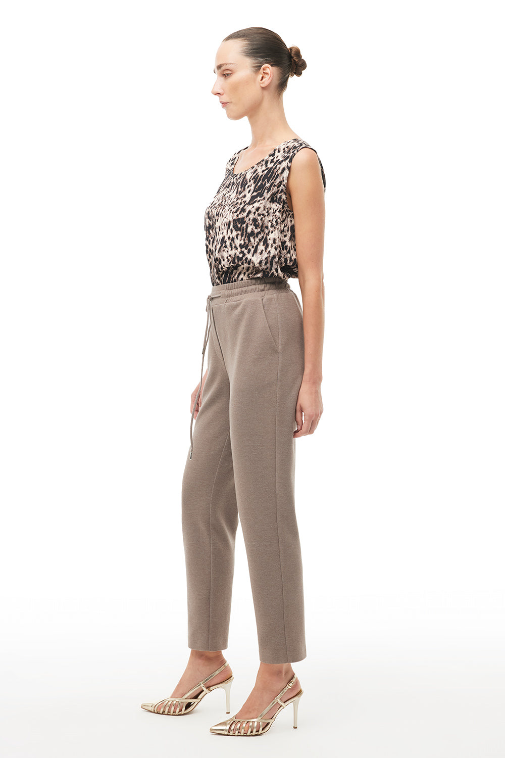 Pantallona kafe me prerje të drejtë dhe ton të ngrohtë, ideale për kombinime neutrale. krijojnë një pamje të rregullt dhe komode gjatë gjithë ditës.