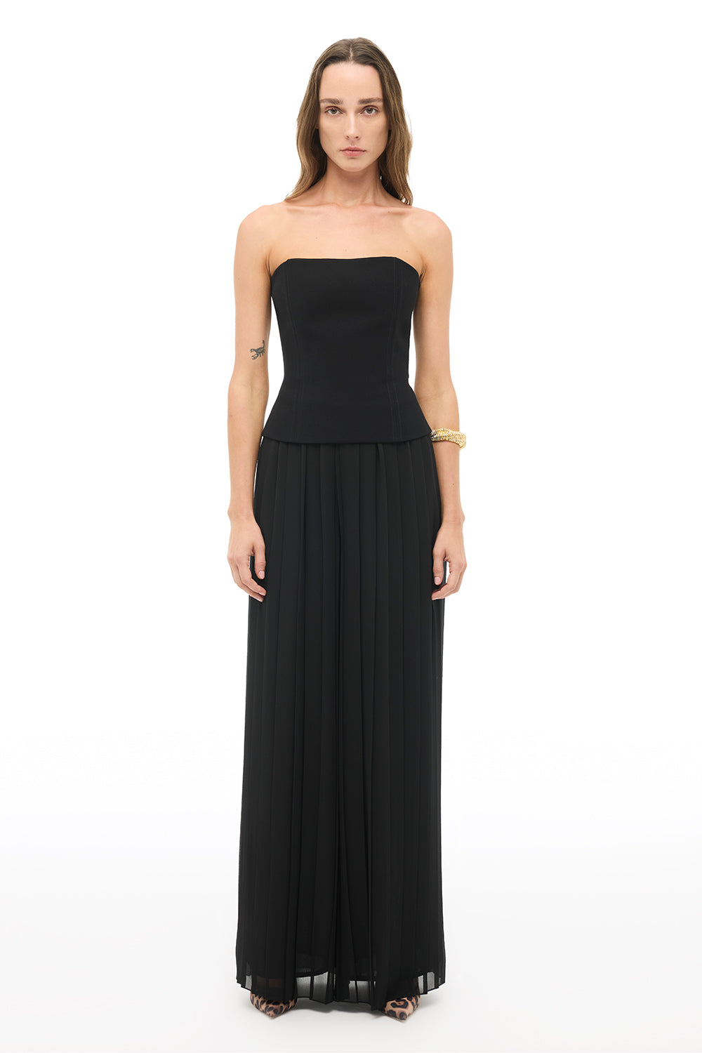 Bluzë e zezë me përshtatje të rehatshme dhe siluetë të butë, ideale për kombinime minimaliste. mund të vishet lehtësisht me pantallona klasike ose xhinse.